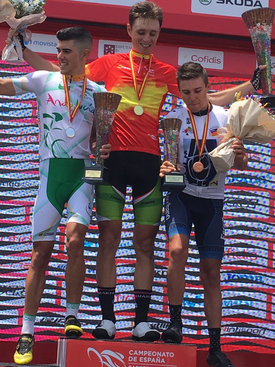 El de Lizarte -menudo Campeonato el de los navarros- dejó a Carmelo Urbano (Andalucía) a falta de siete kilómetros y con diferencias que estuvieron en torno a los diez segundos, se presentó con 12″ en meta. A 2:18 llegaron Biel Pons (Baleares) y José Felix Parra (Castilla-La Mancha), que se jugaron el bronce en un sprint amargo para el derrotado, que había perdido contacto con Elosegui y Urbano por un culpa de un pinchazo a poco más de diez kilómetros de meta. Por ello entró llorando en meta lamentándose de toda la mala suerte que ha tenido todo el año. A 3:19 llegó un Carlos García (Madrid) que lucho muchísimo en la parte final por intentar cazar a los de cabeza, pero que lo acusaría. Pese a todo, un excelente Nacional para un corredor que, no lo olvidemos, es debutante en la categoría.