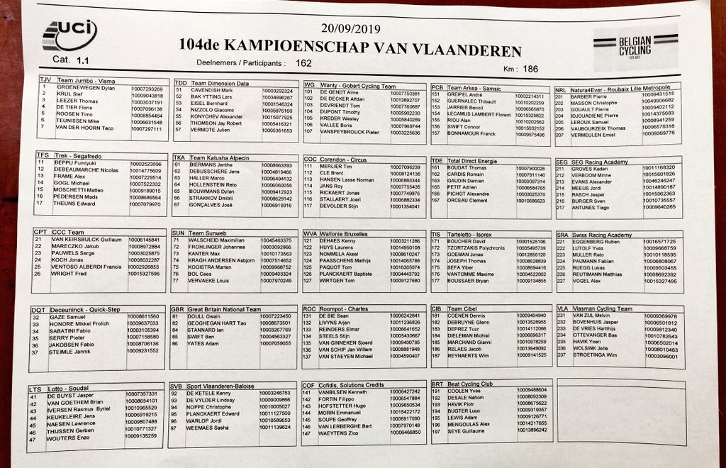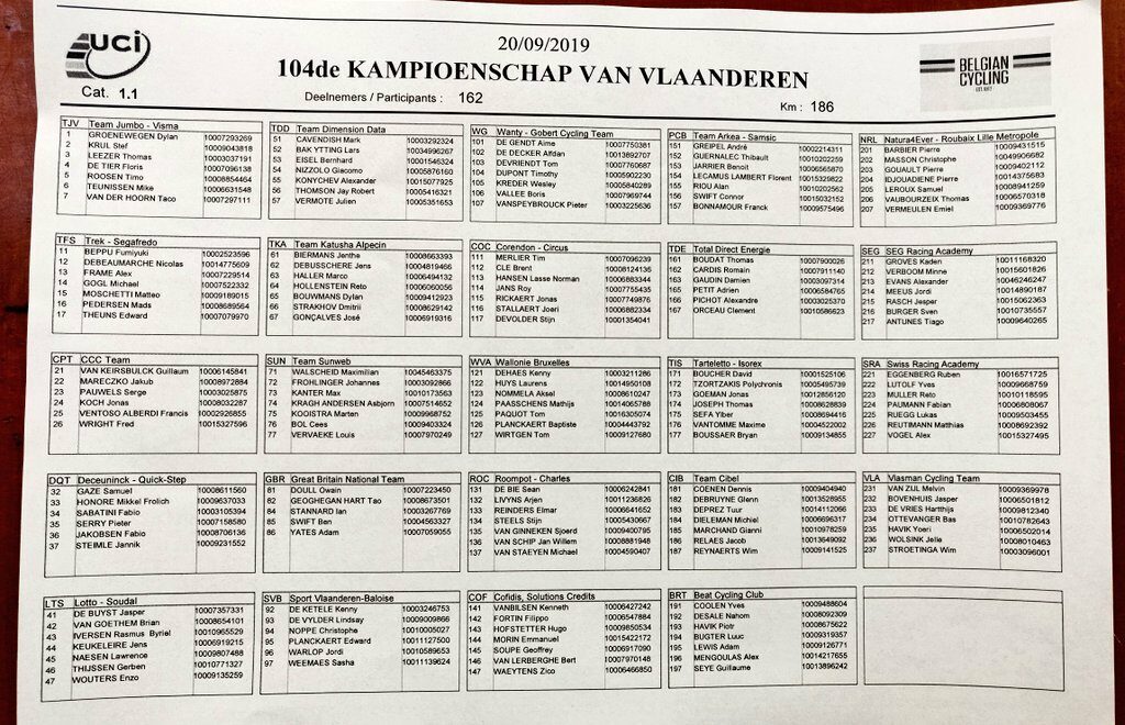 | DNF | Jenthe Biermans | 1995 | Team Katusha – Alpecin | |