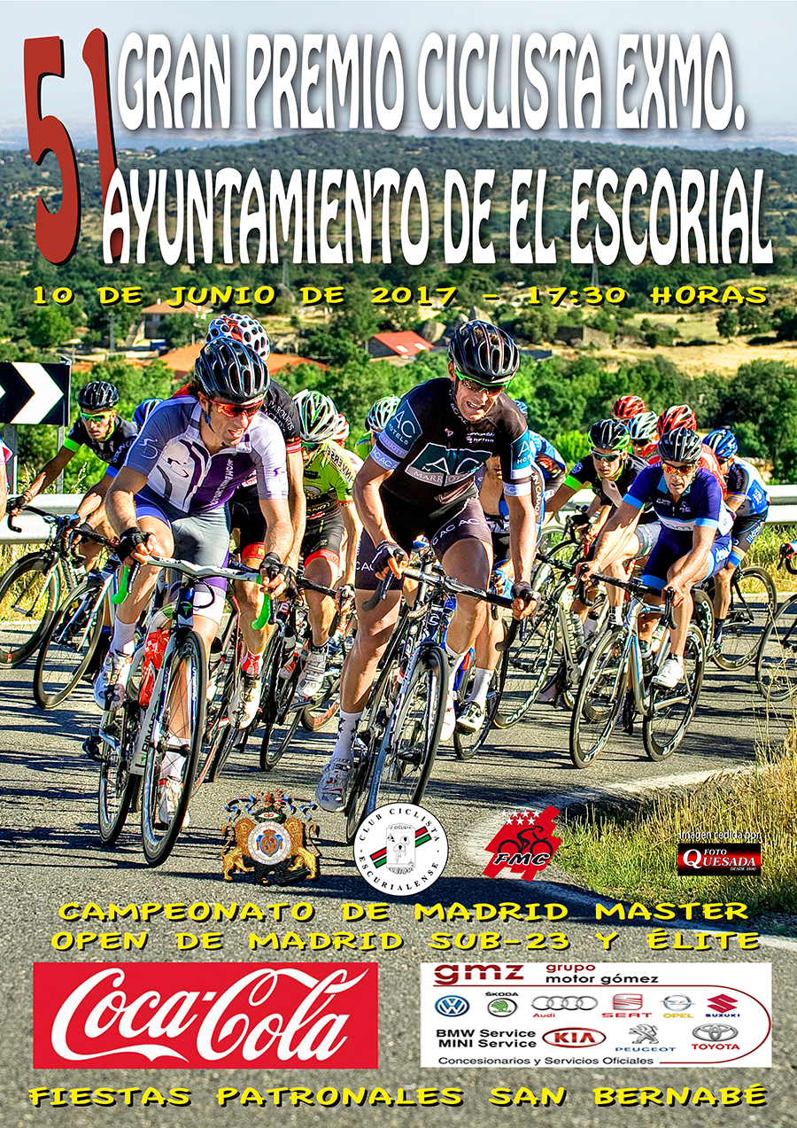 Los mejores ciclistas madrileños de las categorías máster, sub-23 y elite volverán a juntarse en El Escorial para disputar la 51ª Edición del Gran Premio Ciclista Excelentísimo Ayuntamiento de El Escorial. La tarde del sábado, 10 de junio, se celebrará el Campeonato de Madrid Máster, que también será puntuable en el Open de Madrid, y podrán participar los ciclistas de las categorías de sub-23 y elite.