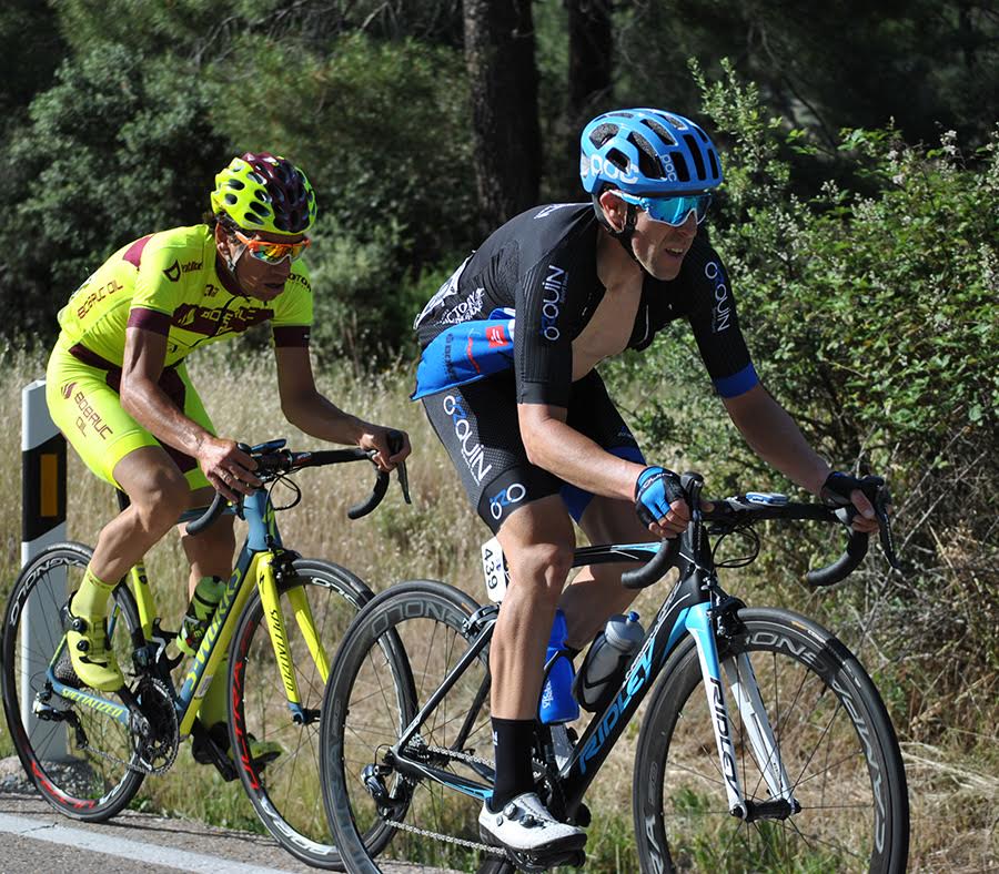 Los 9 ciclistas entraban al relevo y afrontaban la primera cima montañosa de la jornada, la Cruz Verde, con 45 segundos sobre el gran grupo. En la ascensión el ritmo era rápido y pronto los escapados alcanzaban a los corredores Máster-50 y 60, que habían tomado la salida en el kilómetro 20. La subida iba seleccionando la escapada y en la cima pasaba un sexteto en solitario, formado por Muñoz, Martín, Moreno, Seale, Aranda y Díaz. Mientras que a 15 segundos pasaba Pérez, Espada y Molina, y a un 1 minuto y 20 segundos el pelotón.