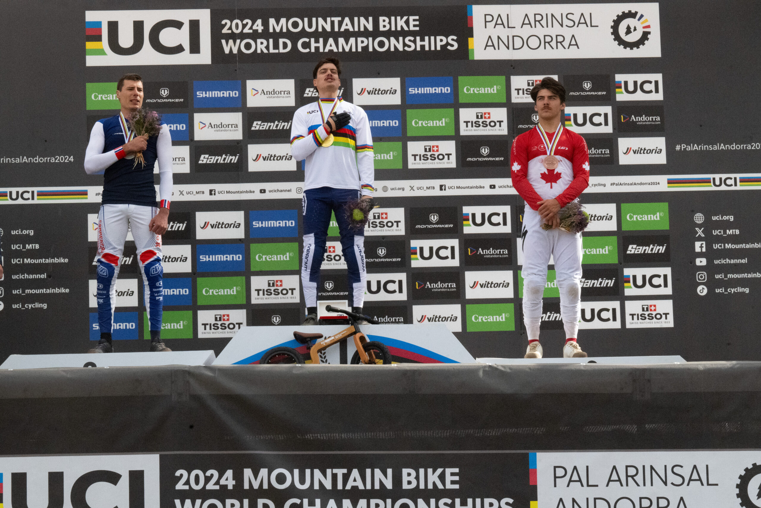 Por su parte, Bruni fue el último en bajar y en el tercer punto intermedio estaba yendo prácticamente dos segundos más rápido que Vergier en ese punto, pero poco después cayó y perdió las opciones de obtener el título mundial, proclamándose automáticamente Vergier como campeón. “Es increíble. No pensaba que esta sería la temporada para lograrlo, pero podríamos decir que he tenido suerte. No pensaba que fuera posible, es un poco irreal, y creo que toda la mala suerte que he tenido este año y los anteriores se ha compensado. No puedo estar más feliz”, señaló el rider francés. “Antes de la caída pensaba que sería un podio completamente francés y sería genial. Lamentablemente (Bruni) cayó y me dejó su maillot. Yo estoy muy feliz y, por lo que me ha dicho, él también está muy contento por mí. A veces caemos y otras no, y estoy muy contento”, añadió. Además, el hecho de haber conseguido el maillot arcoíris en Andorra lo hizo aún más especial. “Hacerlo donde paso más tiempo en mi vida es la cima, no podría soñarlo mejor”, concluyó.