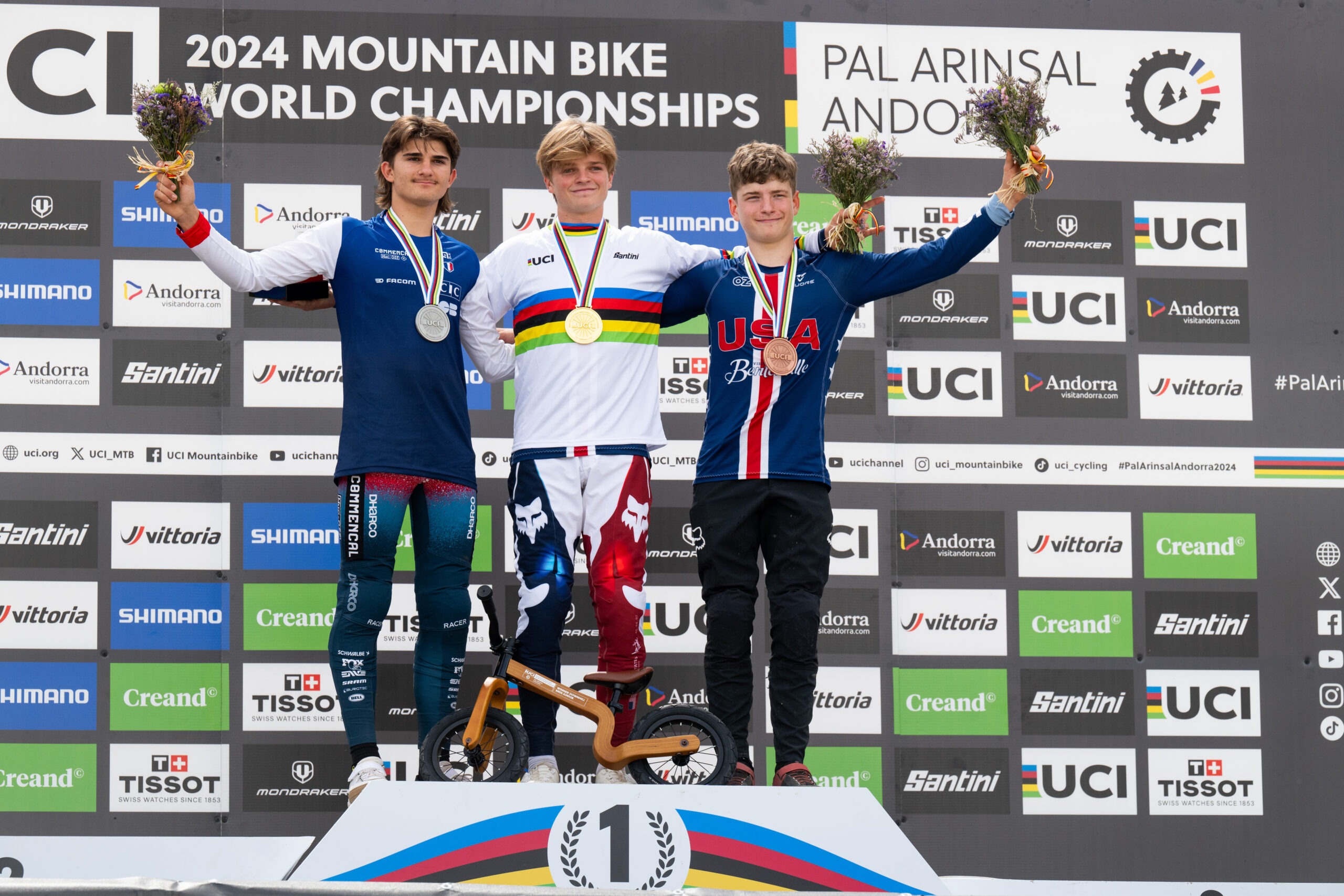 El residente en Andorra, Loris Vergier, ha obtenido su primer título mundial Élite en una final espectacular en la que la caída del máximo favorito, su compatriota y también residente en el país, Loïc Bruni, ha sido clave. La carrera no pudo haber sido más ajustada y, de hecho, los cinco primeros riders quedaron en menos de un segundo de diferencia. Vergier completó los 1,9 km y 457 metros de desnivel de descenso en 2’38’’661, registro que le sirvió para ser primero con solo 148 centésimas de diferencia respecto a su compatriota, Benoit Coulanges, que obtuvo la plata, mientras que el canadiense Finn Iles fue bronce a solo 169 centésimas del campeón mundial.