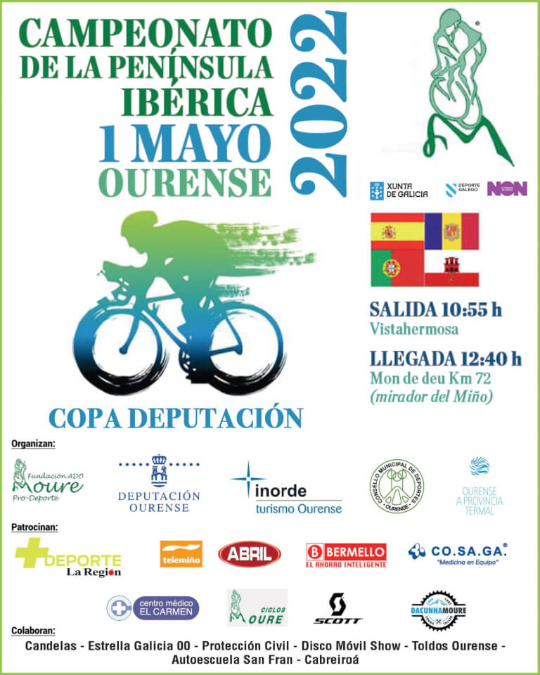 As estradas da provincia acollerán este domingo, 1 de maio, o Campeonato de la Península Ibérica 2022, unha proba ciclista open organizada pola Fundación ADO Moure ProDeporte co apoio da Deputación de Ourense e o Consello Municipal de Deportes.
