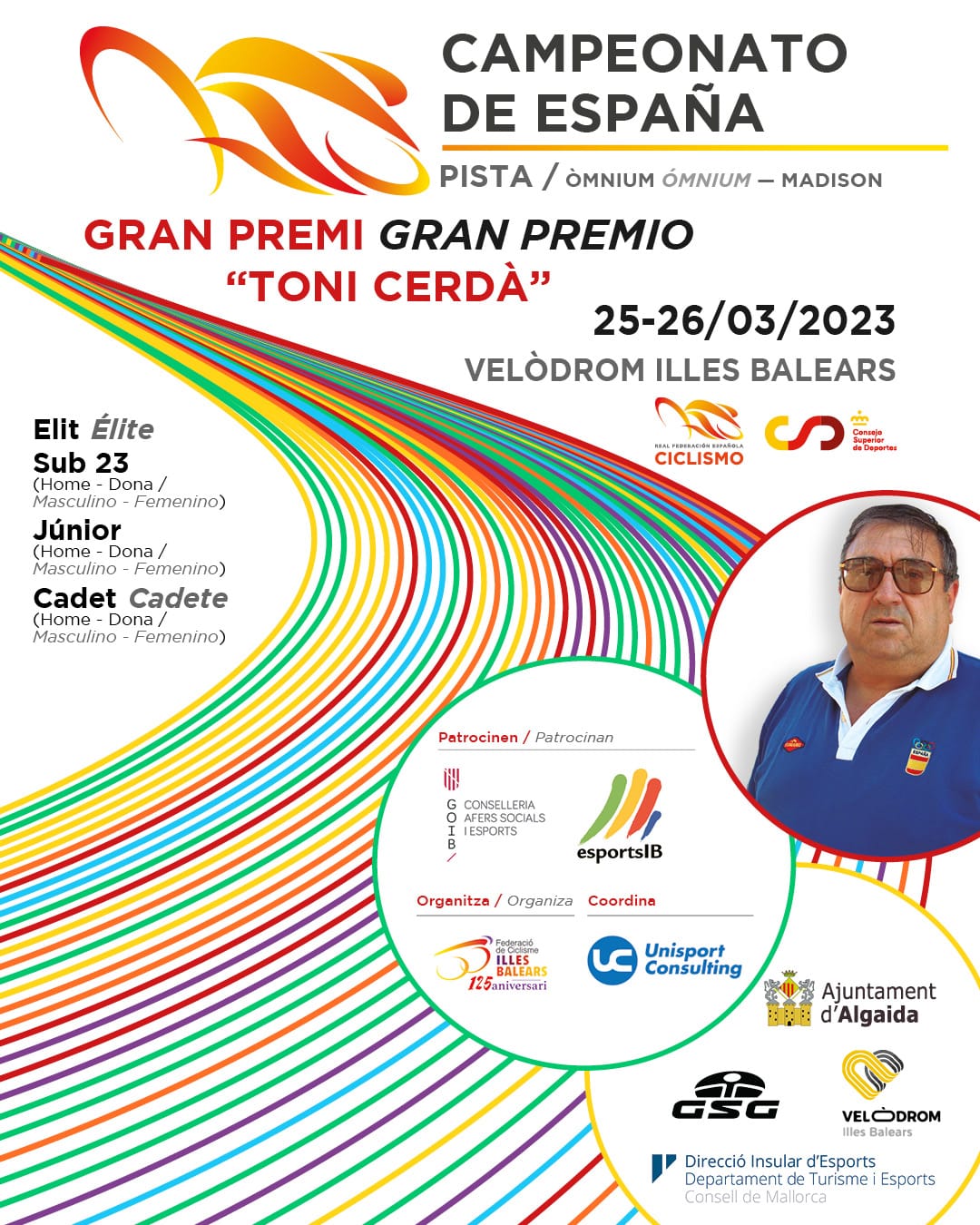 La Federación Española ha colgado esta tarde el programa de los Campeonatos de España de ómnium y madison-Gran Premio Toni Cerdá que se celebrarán en el velódromo Illes Balears de Palma de Mallorca los días 25 y 26 de marzo, organizados por la Federación Balear y Unisport Consulting, para las tres categorías: élite-sub23, junior y cadete, masculina y femenina.