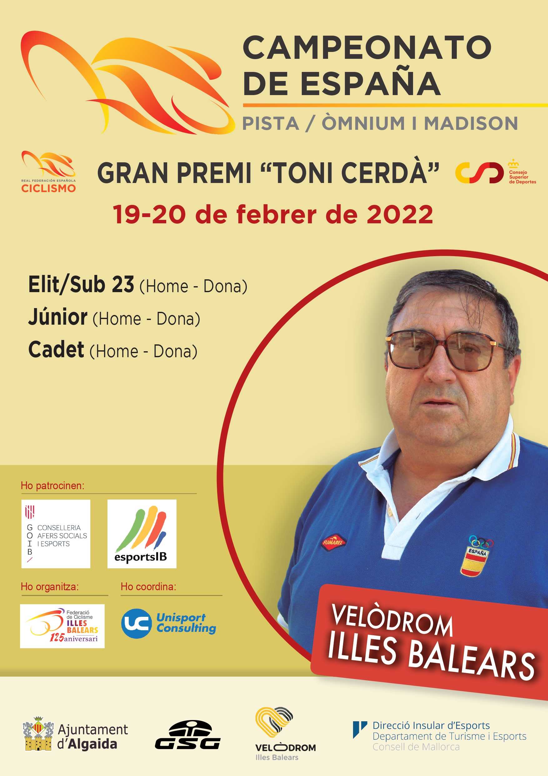 Los Campeonatos de España de ómnium y madison-Gran Premio Toni Cerdá se celebrarán en el velódromo Illes Balears de Palma de Mallorca los días 19 y 20 de febrero, organizados por la Federación Balear y Unisport Consulting, para las tres categorías: élite-sub23, junior y cadete, masculina y femenina.