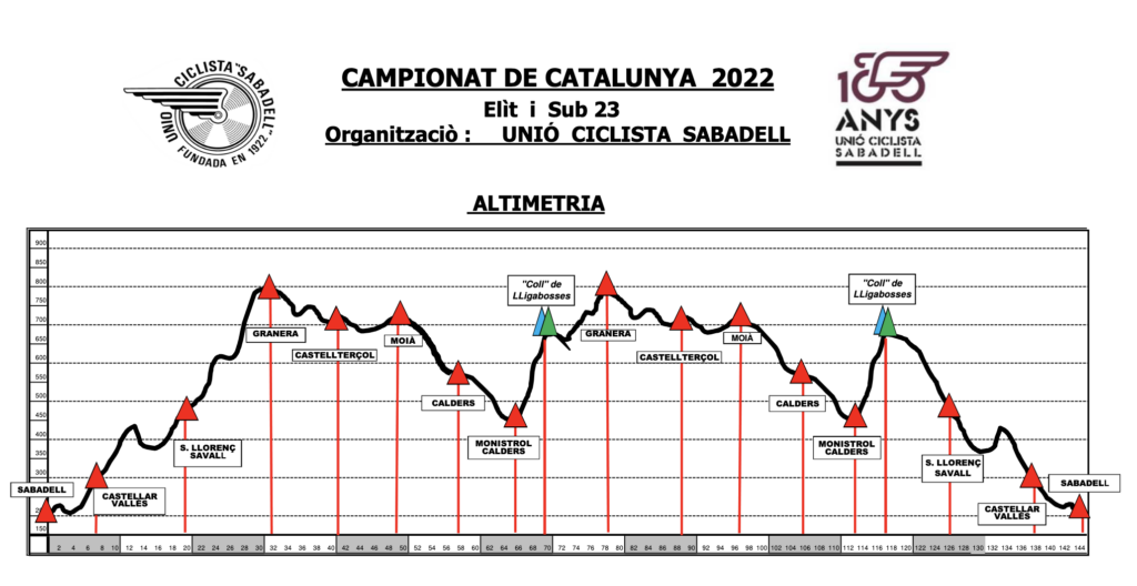 Per la seva banda, diumenge 22 serà el dia per la disputa del Campionat de Catalunya elit/sub23, que en aquesta ocasió viurà un Campionat propi deslligat del calendari de Grans Clàssiques. Amb tot, gran part del recorregut serà familiar als habituals de les proves sabadellenques d’inici de temporada, amb un recorregut que finalment consta de 144,5km amb la incorporació de dues pujades fins a Granera, també amb arribada i sortida des del Pavelló Municipal de Can Balsach, en aquest cas a partir de les 9h. La prova coronarà doncs els campions de Catalunya en ruta 2022 en les categories elit i sub23.