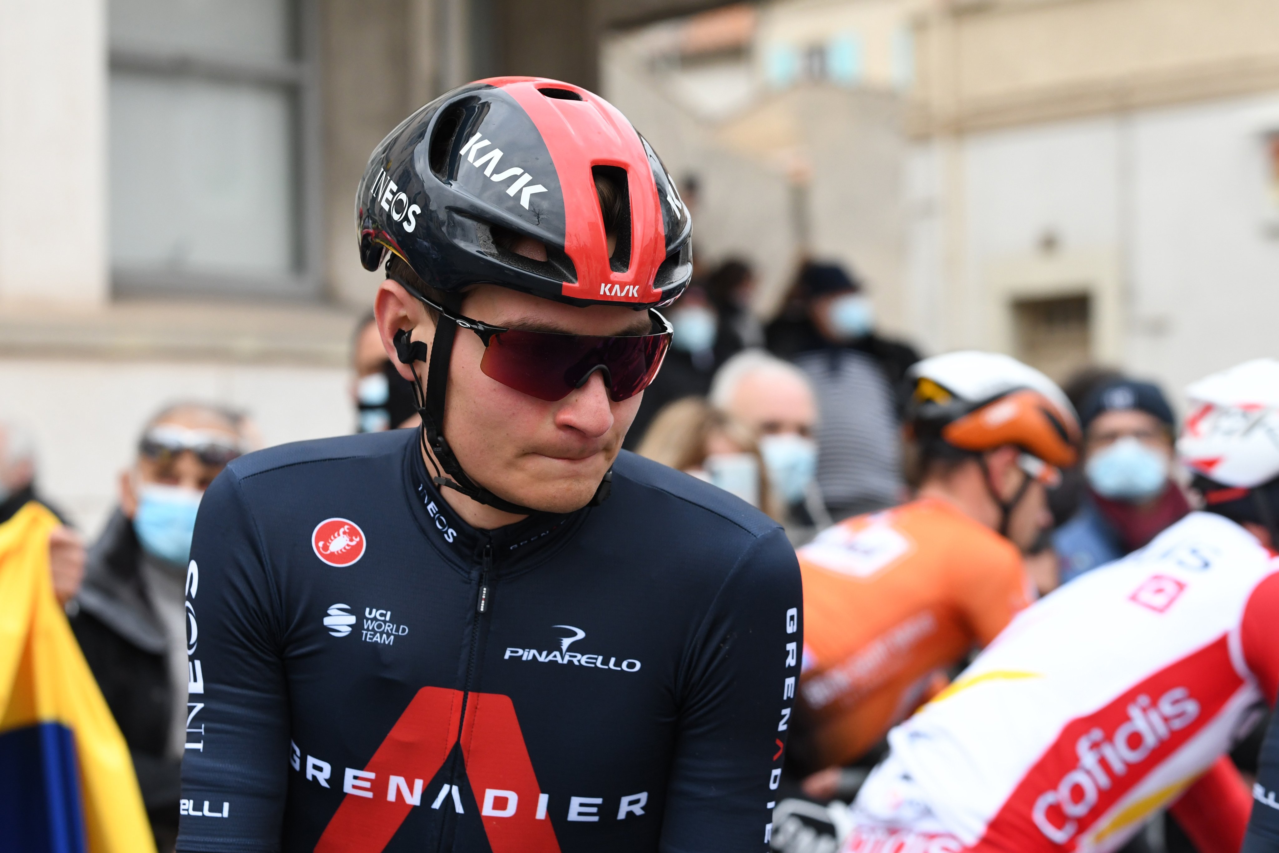 Sonriente y satisfecho, Carlos Rodríguez comienza a sentir lo que es ser un corredor señalado y que porta el maillot del equipo Ineos-Grenadiers. Pocos ciclistas de 20 años concentran tantas peticiones de fotos y autógrafos como él tras cruzar la línea de meta de La Nucía.