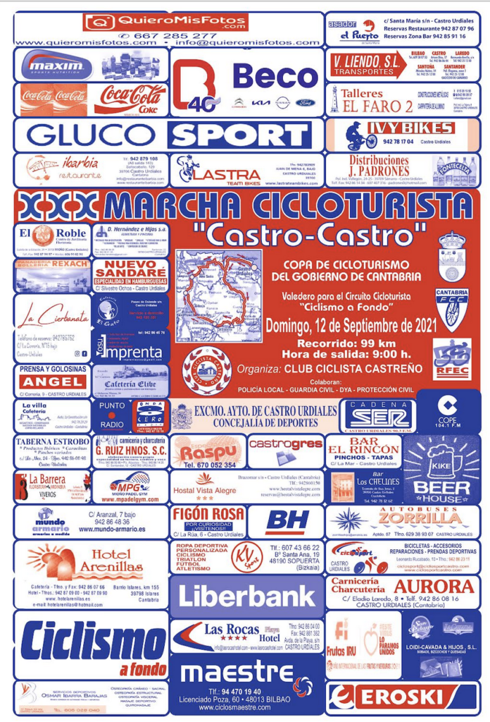 El pasado domingo 12 de septiembre se celebró en Castro Urdiales (Cantabria) la XXX Marcha Cicloturista Castro-Castro, incluida en la Copa de Cicloturismo del Gobierno de Cantabria y valedera para el circuito ciclismo de fondo. En esta edición, la marcha cántabra contó con la participación de Ziortza Villa, una de las mejores ciclistas de ultrafondo del mundo cuyo palmarés, entre otros logros, recoge cuatro campeonatos de España de Ultrafondo (2016, 2017, 2018 y 2019), dos Copas de España de Ultrafondo (2017 y 2018), récord de España 24 horas en 740 kilómetros, el récord del Mundo femenino del Camino de Santiago, la presencia en tres campeonatos del Mundo 24 horas contrarreloj (6ª 2017, 4ª 2018 y 4ª 2019) y el título de campeona de Europa 24 horas absoluta femenina en 2019 con récord en circuito establecido en 773 Kms.
