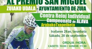 Los cadetes y los júnior alaveses disputarán este próximo sábado 28 de septiembre el 40º Premio San Miguel, en el que se dilucidarán los títulos de campeones alaveses de contrarreloj individual. La prueba se celebrará en la localidad de Murgia ...