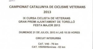 El próximo domingo Torelló acoge su IX Cursa Ciclista de Veteranos-Gran Premi Ajuntament, en un circuito interurbano que servirá como Campeonato de Cataluña de la categoría. La salida y llegada se ubica en la calle Manlleu de la localidad osonense. ...
