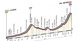 Altimetría interactiva del puerto de Abetone, final de la 5ª etapa del Giro de Italia 2015.