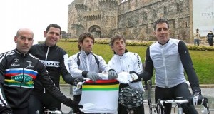 Los cuatro campeones del mundo profesionales españoles –Abraham Olano, Miguel Indurain, Oscar Freire e Igor Astarloa– junto al ‘imprescindible’ Perico Delgado fueron los encargados de inaugurar el recorrido del Campeonato del Mundo de Ponferrada 2014, que se disputará del 21 ...