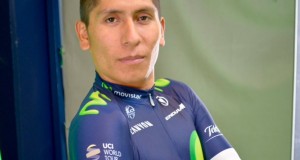 Nairo Quintana, uno de los dos jefes de filas junto a Alejandro Valverde, ha sido el elegido para desvelar la equipación del Movistar 2016, mientras se hallan concentrados en su habitual reunión de Pamplona. El colombiano y sus compañeros ...