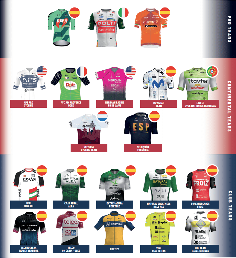 - UCI ProTeams españoles: Burgos, Caja Rural, Kern Pharma y Euskaltel.