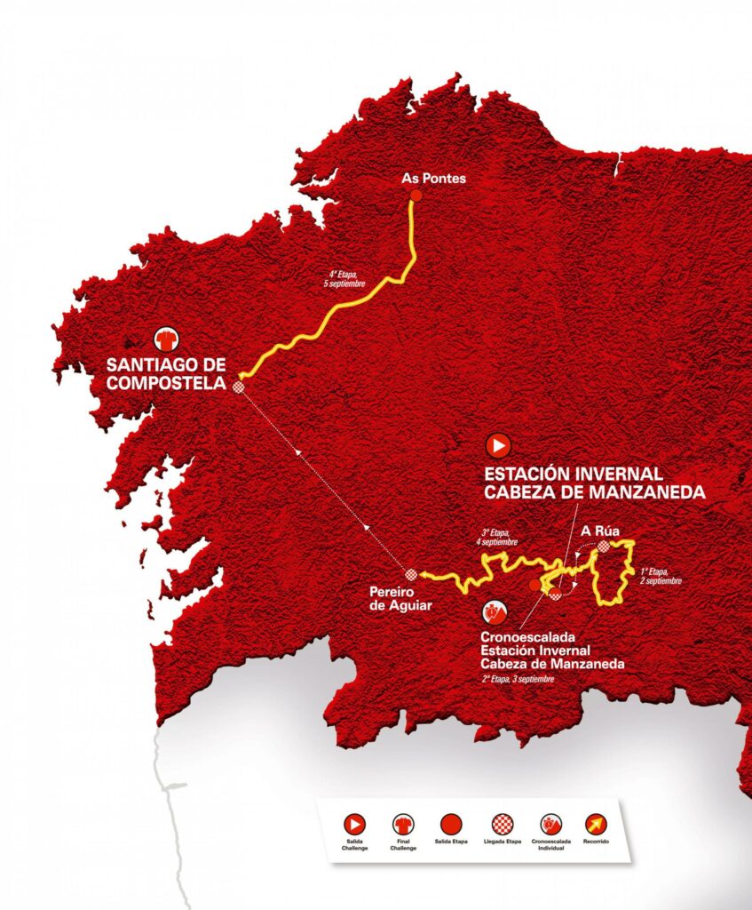 En total, cuatro etapas muy diferentes, entre las que se incluyen dos exigentes jornadas de media montaña, una cronoescalada de 7,3 kilómetros y una última etapa en llano, con previsible final al sprint en la capital gallega, Santiago de Compostela. Esta última etapa se disputará el 5 de septiembre, coincidiendo con el final de La Vuelta 21 en la Plaza del Obradoiro.