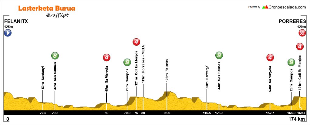 Jueves 28 de enero: Trofeo Felanitx-Ses Salines-Campos-Porreres, 174 kms. Estas dos poblaciones se incorporan por primera vez a la carrera en su 25 aniversario. Felanitx cuna de Guillermo Timoner, seis veces campeón del mundo de ciclismo en pista y trece veces campeón de España de medio fondo. Así como Porreres pueblo natal de Joan Llaneras, en nuevo ocasiones medalla de oro en Mundiales y Olimpíadas.