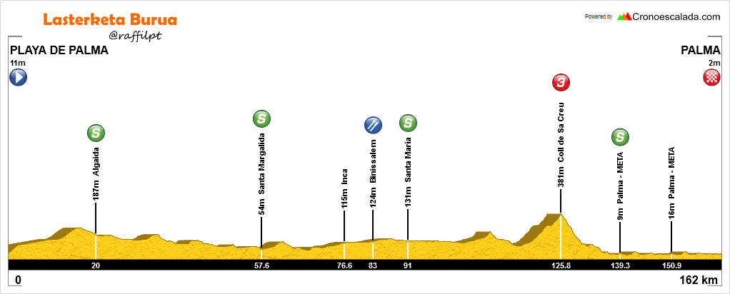 Domingo 31 de enero: Trofeo Playa de Palma, 161,5 kms, con variaciones en los últimos 30 kilómetros, aunque se sigue finalizando en el mismo circuito, para disfrute de los aficionados. Cabe destacar que el circuito de Palma es una de las etapas más antiguas de la Challenge.