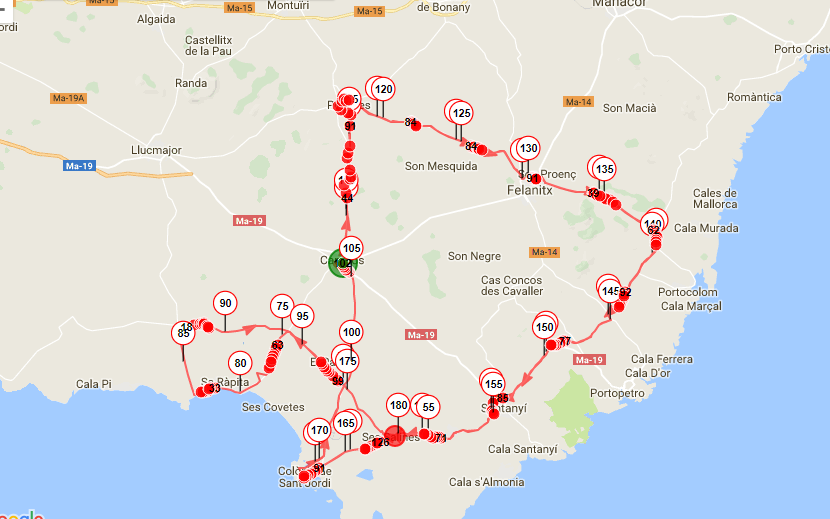 Jueves 25 enero: Trofeo Campos, Porreres, Felanitx, Ses Salines (rutómetro)