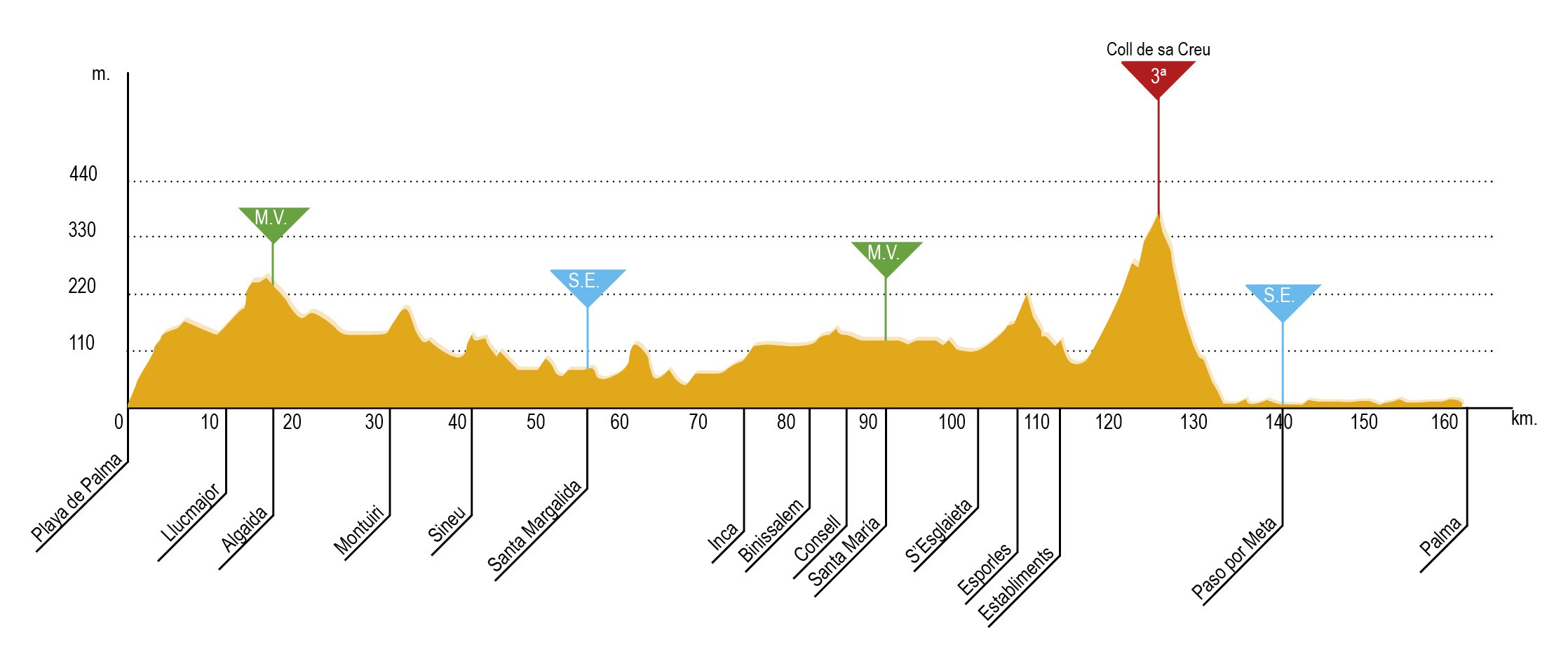 Sobre 160 kilómetros, prueba en línea llana donde se finalizará dando dos vueltas al Paseo Marítimo de Palma de Mallorca, que dará como vencedor a un velocista como viene siendo habitual.
