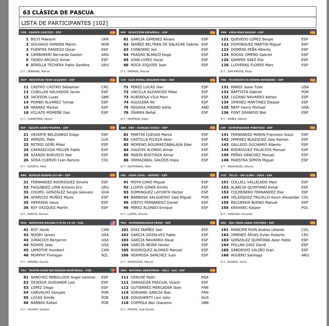 Tras tomar parte en el estreno de la Challenge Futura, en el Gran Premio Primavera de Ontur, el combinado nacional vuelve a la competición con la intención de seguir acumulando experiencia frente al pelotón profesional. Para esta Clásica de Pascua, el seleccionador nacional Pascual Orengo ha confeccionado un equipo integrado por Gabriel Ibáñez, Hugo Pradas, Joan Roca, Jon Conejero, Álvaro García y Óscar Vian.
