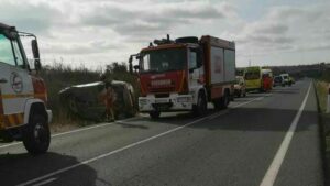 Por el momento se desconocen las causas del accidente, aunque todo apunta al exceso de velocidad del conductor, cuyo vehículo dio al menos una vuelta de campana. Dicho conductor, junto con su acompañante, una mujer embarazada, han sido trasladados a un centro sanitario para comprobar su estado.