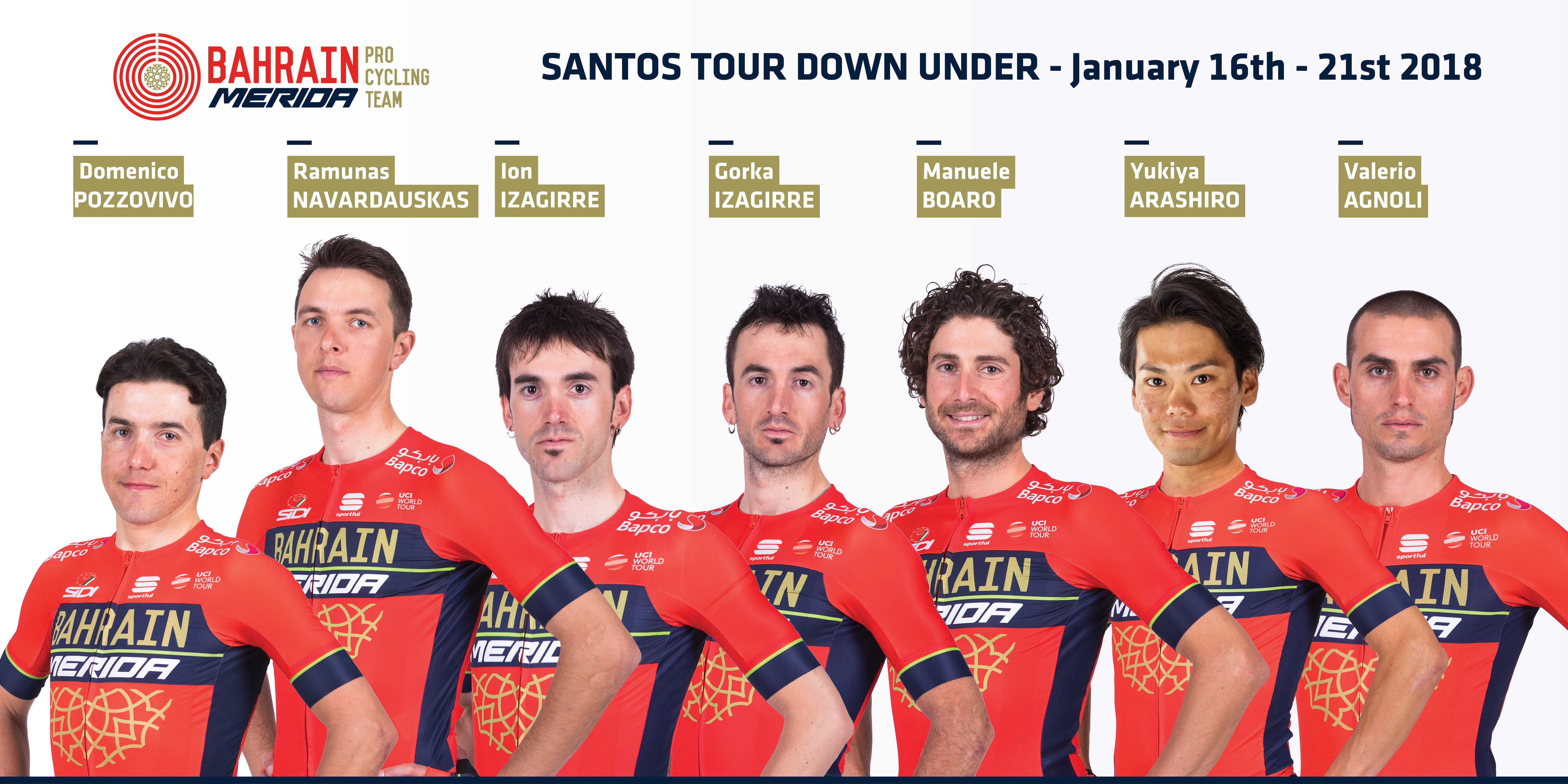 3 enero. Los hermanos Ion y Gorka Izagirre volverán a coincidir un año después en el Bahrain y en el Tour Down Under (etapas), primera prueba puntuable del UCI World tras el fichaje del hermano mayor por el equipo asiático. Tristan Hoffman, director, dijo qe «los hermanos Izagirre y Pozzovivo compartirán el liderazgo. Ion se ha estado recuperando mucho después del Tour de Francia. Gorka terminó octavo en la general en 2015. Domenico se unió a los dos campos de entrenamiento y mostró su gran personalidad. Espero verlo nuevamente en ruta. Esperamos que los 3 corredores terminen en el top 10″. Ion Izagirre también mostró una gran expectativa en TDU: «En primer lugar, mi objetivo principal es recuperar la sensación que tenía antes del accidente, recuperar la confianza en el pelotón con el estrés de carrera. Ya hice dos veces esta carrera y sé qué tipo de etapas hay. Es una buena carrera para comenzar la temporada, es verano, etapas cortas, no demasiados traslados. Vamos con Pozzovivo y mi hermano, lo cual es muy importante para mí. En mi opinión, vamos a tener un equipo muy fuerte». La alineación la completan Manuele Boaro, Valerio Agnoli, Yukiya Arashiro y el también recuperado Ramūnas Navardauskas.