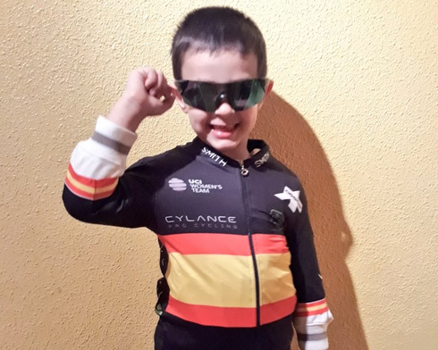 19 enero. Sheyla Gutiérrez ha elegido una original manera de presentar, a través de las redes sociales, el maillot de campeona de España que lucirá, al menos, durante la primera mitad de esta campaña de 2018. Aunque al modelo le venga un poco grande, se aprecia claramente el protagonismo de la bandera como símbolo de su título nacional.