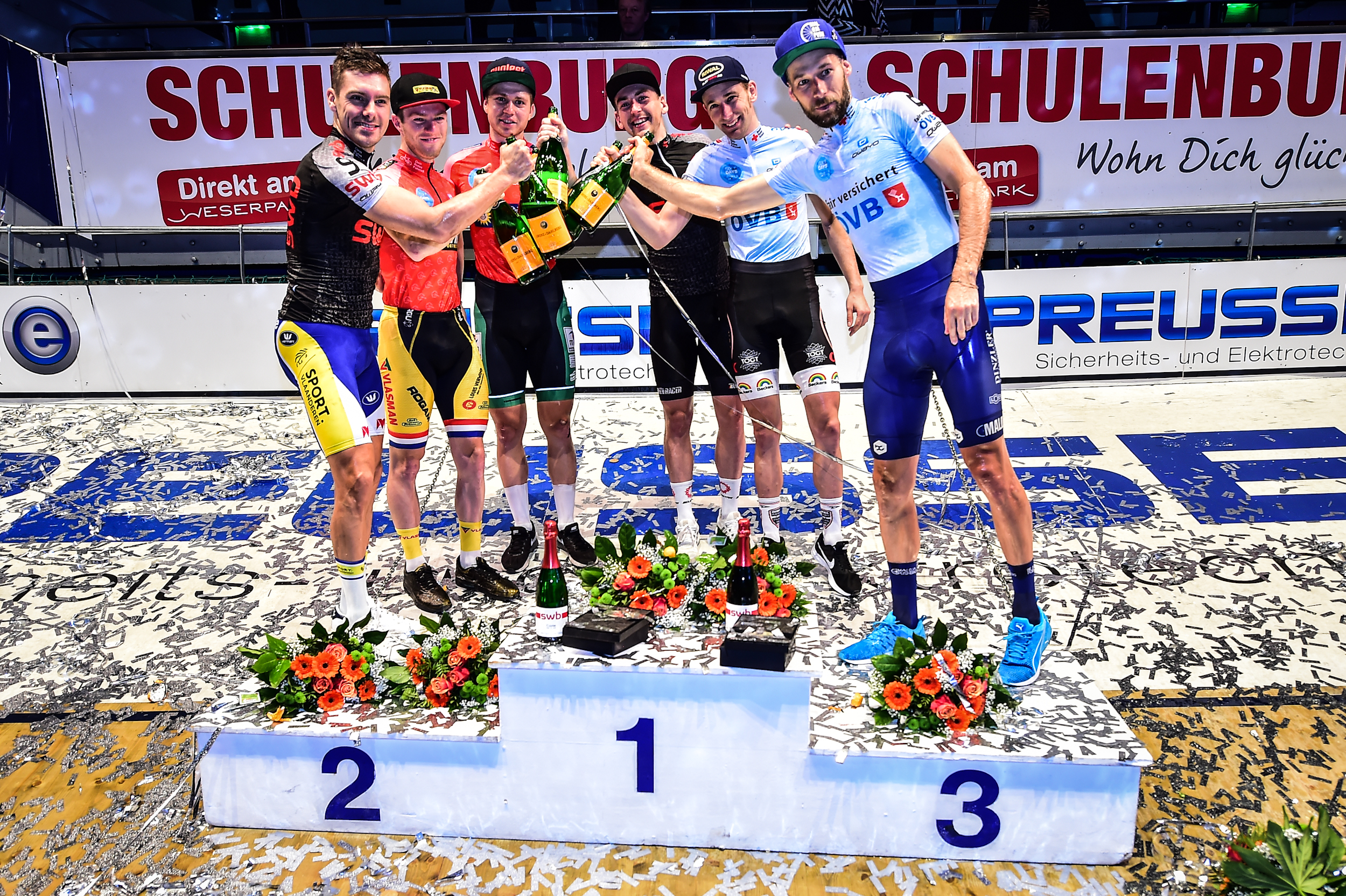 16 enero. Los 6 Días de Bremen (Alemania) concluyeron con la victoria final del belga Kenny de Ketele y el local Theo Reinhardt que desbancaron a los anteriores líderes Burkart y Havik. Grasmann y Morkov completaron el podio de una prueba sin presencia española.