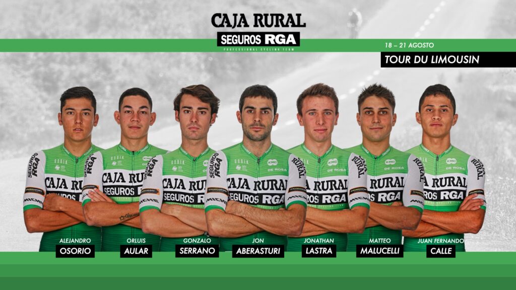 16 agosto. El equipo español Caja Rural-Seguros RGA vuelve a las carreteras tras una semana de descanso para participar en el Tour del Limousin, vuelta francesa UCI 2.1 que se celebra desde el martes 18 hasta el viernes 21 de agosto. La formación navarra de categoría Pro Team ha anunciado un siete con varias bazas para luchar por las etapas: Jon Aberasturi, Gonzalo Serrano, Jonathan Lastra, Matteo Malucelli, Alejandro Osorio, Juan Fernando Calle y Orluis Aular, que redebuta tras el parón por la pandemia.