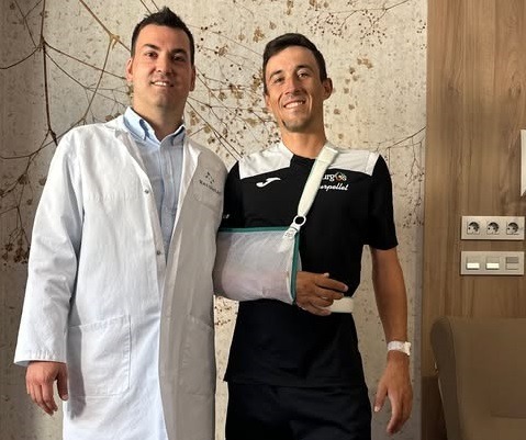 10 agosto. Las pruebas médicas han confirmado que José Manuel Díaz Gallego sufre una fractura en la clavícula derecha. Mañana será intervenido quirúrgicamente en @RecoletasSalud, a quienes agradecemos su rápida atención y tratamiento. Enviamos todo nuestro apoyo al jienense, deseándole una pronta y completa recuperación.