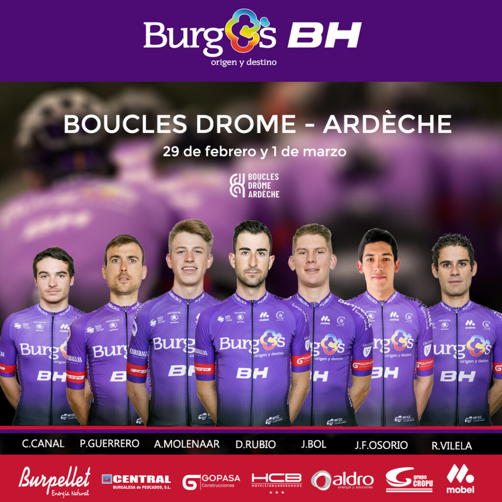 26 febrero. Fin de semana francés para el Burgos, con dos pruebas que ya son tradicionales en el equipo y que vuelven a situarse como grandes objetivos en estos primeros compases de la temporada, antes del parón para preparar las citas WorldTour de Cataluña y País Vasco. Con una parte del equipo disputando el Tour de Taiwán, el resto de efectivos prepara las venideras citas de la temporada en el país vecino y lo hace con dos pruebas largas y con un nivel de participación muy elevado. Tanto Ardeche como Drome Classic suponen una previa antes de las grandes competiciones francesas y el ritmo al que se disputa la carrera así lo atestigua. Participan en ambas clásicas Jetse Bol, Carlos Canal en lo que será su debut en carretera, Alex Molenaar, Pablo Guerrero, Diego Rubio, Juan Felipe Osorio y Ricardo Vilela.