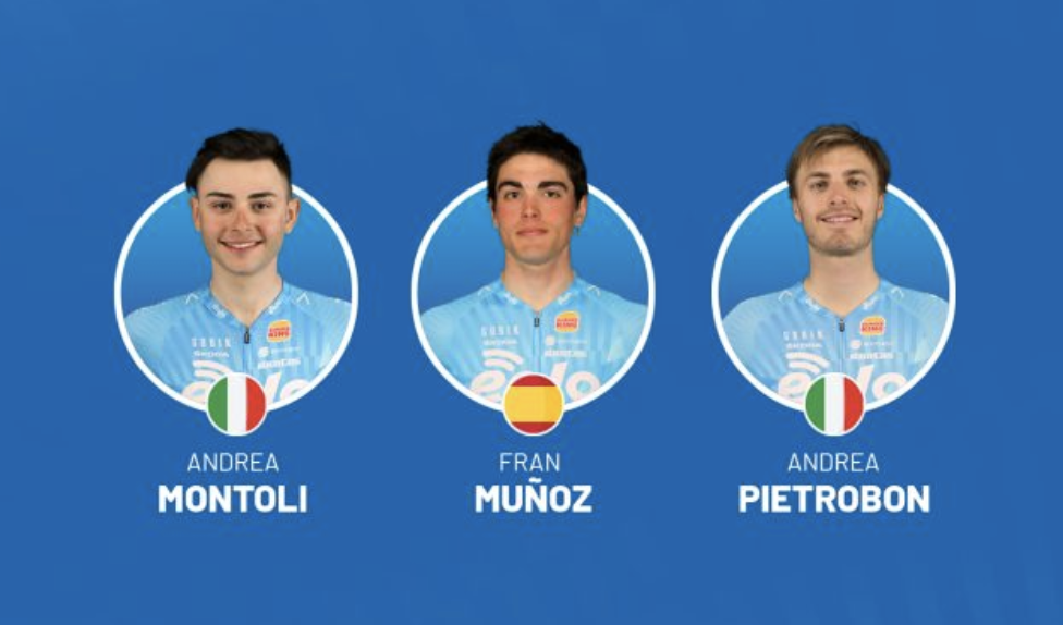 29 julio. Tres ciclistas del equipo sub-23 van a poder competir con el Eolo italiano en calidad de aprendices. Andrea Montoli, Fran Muñoz y Andrea Pietrobon son los tres seleccionados por el cuerpo técnico en esta ocasión.