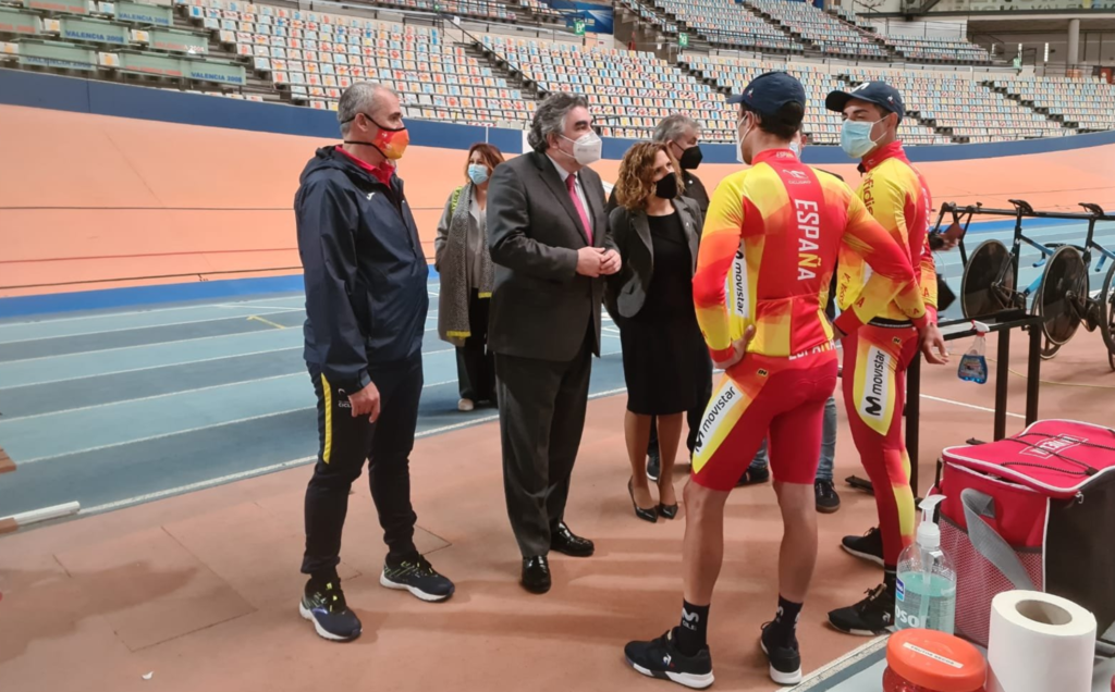 3 marzo. El Ministro de Cultura y Deportes, José Manuel Rodríguez Uribes, visitó esta tarde el Velódromo Lluís Puig, de Valencia, donde se encuentra el Centro Especializado de Alto Rendimiento de ciclismo (CEAR), si bien ahora mismo tan sólo se encuentran allí los corredores Albert Torres y Sebastián Mora, realizando una concentración para probar material de cara a los Juegos Olímpicos, acompañados del seleccionador nacional, Juan Martínez Oliver, y de sus preparadores, Dídac Navarro y Javier Zahonero. Los dos corredores departieron con el ministro sobre su preparación olímpica, saliendo a colación el nombre de su compañero de equipo Alejandro Valverde, galardonado ayer con el Premio Nacional del Deporte 2018. / TrackPiste