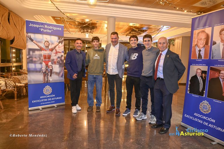 10 noviembre. La Asociación de Exciclistas de Asturias hizo entrega este fin de semana de las Insignias de Oro a varios ciclistas y personas del mundo del ciclismo vinculados con el Principado. Joaquín Rodríguez recogió la Insignia de Oro de los exciclistas asturianos de mano del presidente, Antonio Menéndez. El corredor catalán se mostró entusiasmado y agradecido por recibir esta distinción ante más de un centenar de exciclistas asturianos de todas las categorías y todas las épocas, que se dieron cita en la XXXI cena-gala anual de la Asociación, con quienes departió durante la tarde-noche y posteriormente posó amablemente con todos los que quisieron fotografiarse con él. En el mismo acto, era distinguido el asturiano Adolfo Alperi Plaza, que representó a España en Los Juegos Olímpicos de Barcelona 92 y Atlanta 96, consiguiendo Diploma Olímpico en ambas participaciones. Además, se hizo entrega de las insignias de plata a los profesionales asturianos Pelayo Sánchez, Sinuhé Fernández y Samuel Fernández. Por otro lado, el asturiano Diego García, recibió la insignia de oro que el año pasado no pudo recoger. Para finalizar el acto, fueron distinguidos con la Placa de reconocimiento de la Asociación; Juan Carlos López Reguero, Juan Francisco Bartolomé, José Luis García Reinares y Roberto Díaz González.