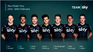 20 febrero. Ian Boswell, Jon Dibben, Owain Doull, Kenny Elissonde, Tao Geoghegan Hart, Peter Kennaugh y Elia Viviani serán los ciclistas que defenderán los colores del Sky en la segunda vuelta UCI World Tour, Abu Dhabi Tour, que comienza el próximo 23 de febrero para terminar el 26.
