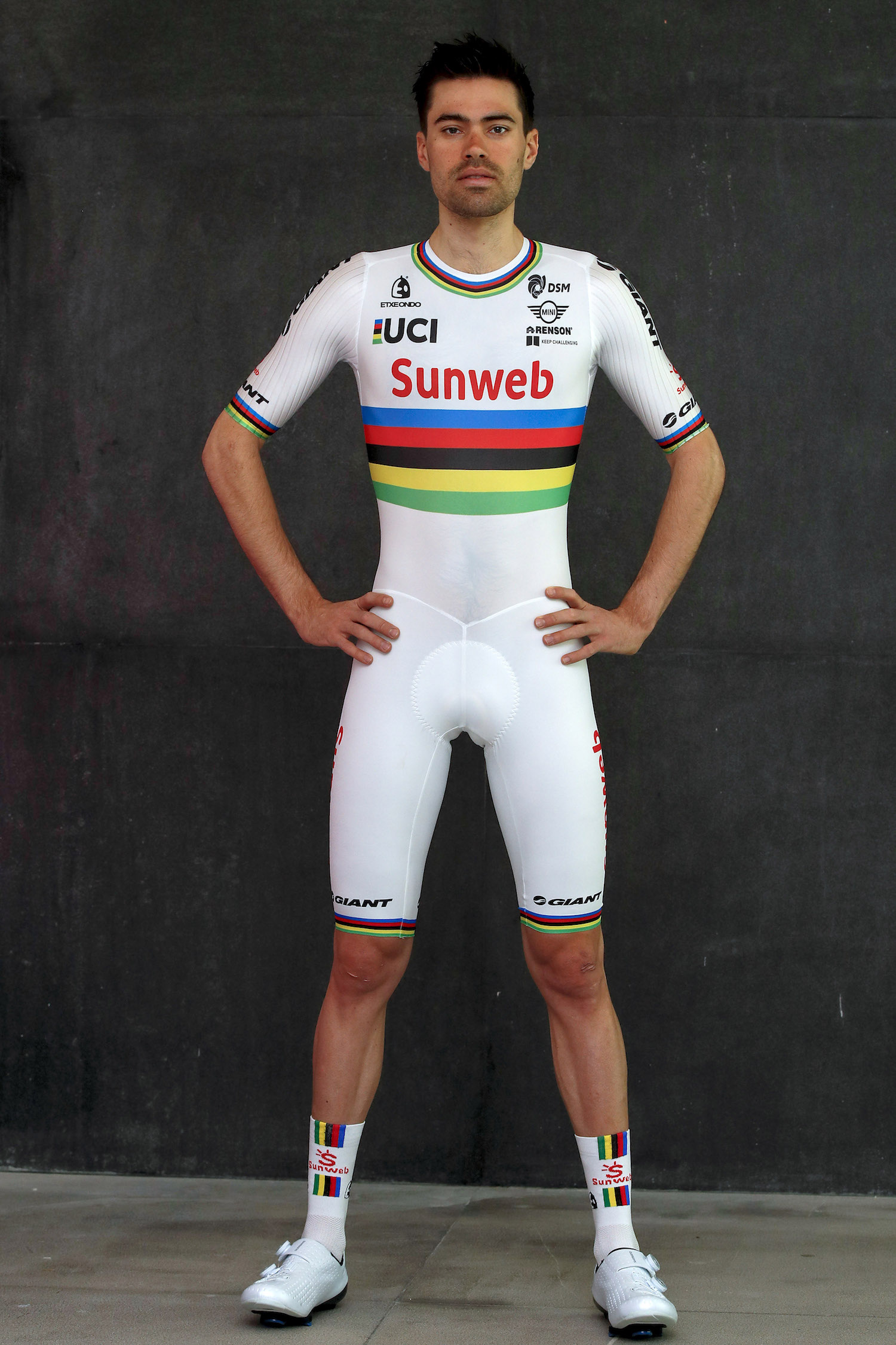 20 febrero. Tom Dumoulin presenta el maillot arcoirís que lucirá como campeón mundial de contrarreloj. El ciclista del Team Sunweb estrenará su nuevo atuendo en el Tour de Abu Dhabi, que arranca este miércoles e incluye también una prueba contra el crono de 11,8 kilómetros en su cuarta jornada: «Estoy muy orgulloso de lo que he logrado y de tener la oportunidad de vestir el jersey del arco iris para este el año es algo muy especial para mí «, ha explicado el holandés.