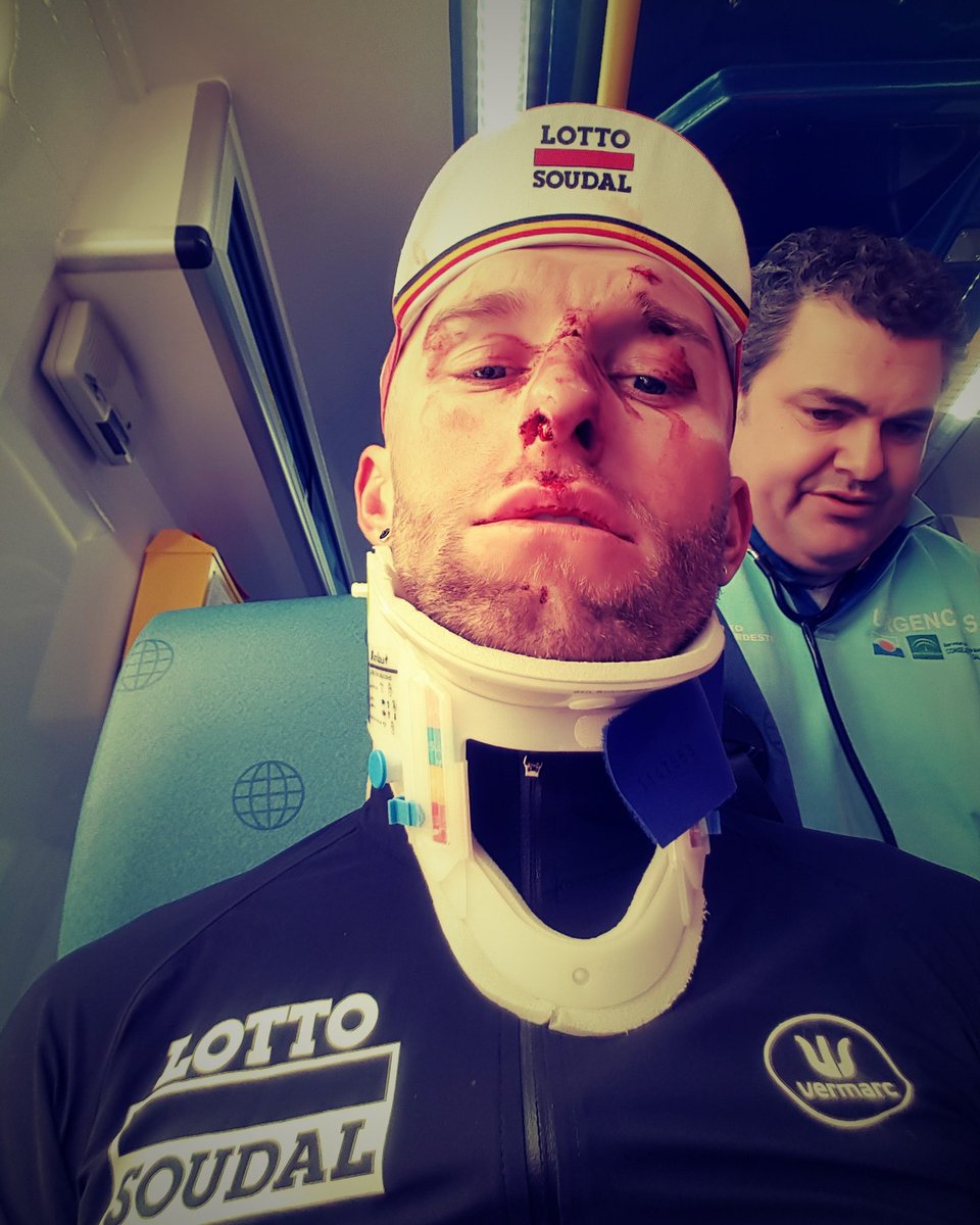 11 febrero. Tomasz Marczyński sufre un accidente mientras se entrenaba. «Volveré». El corredor del Lotto-Soudal publicó en sus perfiles sociales una foto en la que aparece con un collarín. Según ha explicado el equipo, el polaco afincado en Granada fue atropellado por un vehículo este sábado durante un entrenamiento. «Tiene un latigazo cervical y varias abrasiones en la cara. Su nariz estaba cosida, pero afortunadamente no hay fracturas», indica el conjunto belga. El doble ganador de etapa en la última Vuelta a España estaba inscrito para participar en la inminente Vuelta a Andalucía, deberá guardar reposo.