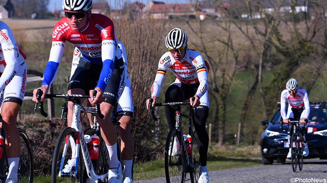 28 febrero. Aunque no estará presente el próximo sábado en la cita inaugural de las clásicas flamencas, Mathieu van der Poel (Corendon-Circus) ha estado presente hoy, junto al resto de sus compañeros de equipo, en el reconocimiento efectuado al recorrido del Omloop Het Nieuwsblad. Al corredor neerlandés, que este año afronta su primera primavera en al ruta, se le ha visto constantemente junto al exganador de la Vuelta a Flandes, Stijn Devolder.