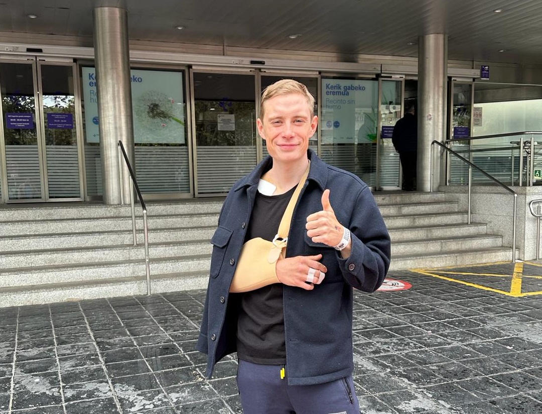 16 abril. Jonas Vingegaard ha abandonado el Hospital de Txagorritxu de Vitoria en el que ha permanecido ingresado los últimos 12 días debido a la caída que sufrió en la cuarta etapa de la Vuelta al País Vasco. Tras ser operado de diferentes lesiones -fractura de clavícula, de varias costillas y un neumotorax- y estar varios días en la UCI, el corredor viaja ya a Suiza, donde vive desde finales de 2023, para continuar con su recuperación. Tras salir del hospital, el equipo Visma-Lease a Bike publicaba unas primeras declaraciones del corredor: «Hola a todos, es hora de dejar el hospital. Quiero agradecer a todo el personal médico por cuidarme tan bien. Y quiero agradecer a todos por su apoyo moral. He recibido muchos mensajes, regalos y dibujos. ¡Es reconfortante! Ahora es el momento de recuperarse completamente de nuevo«.