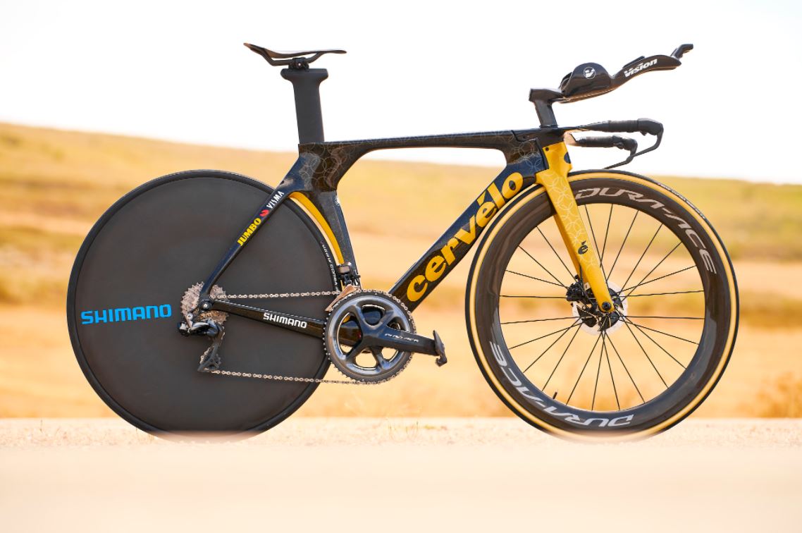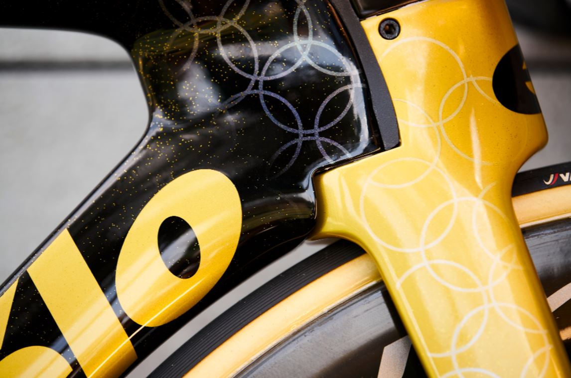 13 agosto. Jumbo-Visma también ‘tunea’ la bici de contrarreloj de Primoz Roglic. Al igual que hará Richard Carapaz por su triunfo en la prueba de ruta (ver más abajo), el esloveno, reciente campeón olímpico en la prueba contra el crono, estrenará en la primera etapa de la Vuelta a España su bicicleta con motivos que aluden al oro conquistado en Tokio. El color dorado y los círculos que evocan la medalla son las referencias que Cervélo ha escogido para celebrar el éxito conseguido por el doble ganador de la ronda española en la cita japonesa.
