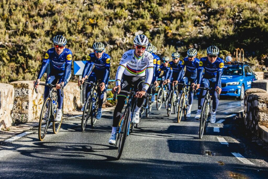16 febrero. La cancelación y aplazamientos de distintas carreras están afectando enormemente a los planes de los equipos ciclistas profesionales, que tratan de conseguir, por todos los medios, que sus corredores puedan seguir un ritmo de trabajo lo suficientemente exigente y monitorizado como para llegar a los grandes objetivos del año en plena forma. Así, el equipo Deceuninck ha decidido organizar una concentración en Gerona, mucho más cerca que Calpe, su cuartel de invierno habitual, de la frontera francesa, donde ahora parece que se concentrará buena parte del calendario pre-clásicas. El equipo de Lefevere ha organizado dos burbujas en dos hoteles distintos separados por unos 30 kilómetros. Uno de los grandes ausentes de esta concentración será Remco Evenepoel, que sigue con su propio proceso de recuperación.