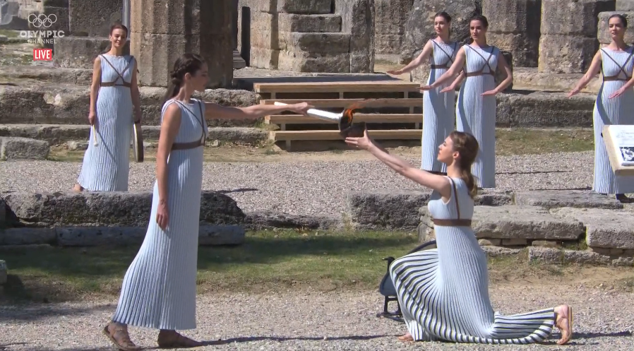 12 marzo. En un evento realizado por primera vez sin público a causa de las medidas para contener la expansión del COVID-19, Olimpia ha acogido esta mañana la ceremonia de encendido de la llama olímpica que empieza ahora su viaje desde Grecia hasta Tokio, donde el día 24 de julio llegará para encender el pebetero tras la ceremonia de inauguración.