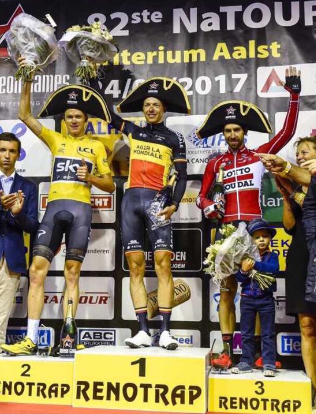 Froome, Naesen y De Gendt, en el podio / © Twitter Ag2R