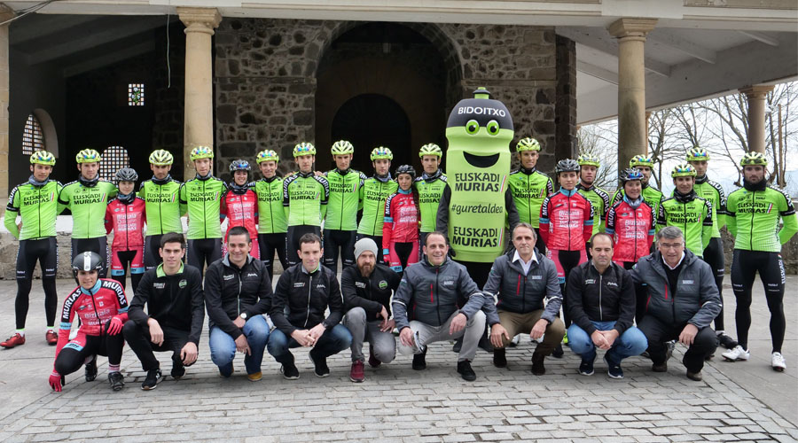 28 marzo. El Euskadi-Murias se volcará en la Vuelta al País Vasco (Itzulia) 2018 que se disputa la próxima semana y no solo en la carretera. El conjunto profesional continental vasco se mostrará muy activo dentro y fuera de carrera, con una carpa en varias etapas y la animación de “Bidoitxo”, la mascota del equipo que se ha presentado hoy por la mañana en un acto en el Santuario de Arrate. La campaña de colaboradores también se ha puesto en marcha. Jon Odriozola ha anunciado los siete corredores que disputarán la Itzulia que son Aritz Bagüés, Fernando Barceló, Mikel Bizkarra, Gari Bravo, Eduard Prades, Óscar Rodríguez y Enrique Sanz. Jon Odriozola, mánager deportivo, ha expresado sus ilusiones ante la Itzulia: «Es un sueño volver a ver a Euskadi en la carrera de casa y eso no se consigue sin trabajo. Hemos peleado muchísimo para llegar hasta aquí. Es la hora de que la gente apuesta por que este proyecto tenga una continuidad seria y sobre todo de crecimiento. Esta temporada ahí están la imagen y la personalidad que hemos demostrado y queremos repetir lo mismo en la Itzulia, que el equipo llegue a la gente sabiendo cuál es nuestro sitio y teniendo los pies en el suelo».