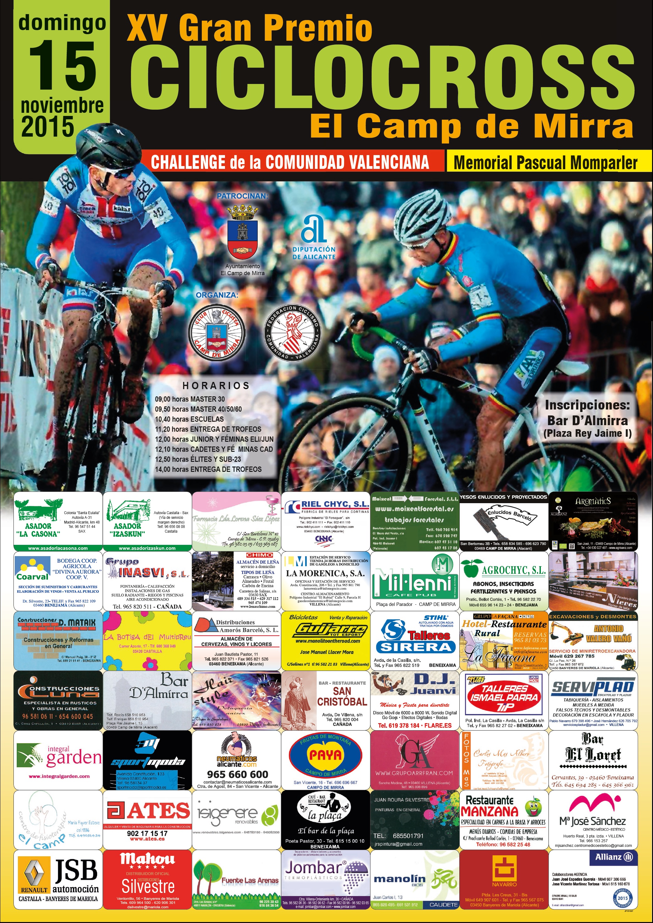 El próximo domingo 15 de noviembre tendrá lugar en Camp de Mirra la XV edición del «Gran Premio de Ciclocross Camp de Mirra”, que será la sexta prueba puntuable de la Challenge de Ciclocross de la Comunitat Valenciana-Memorial Pascual Momparler.