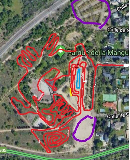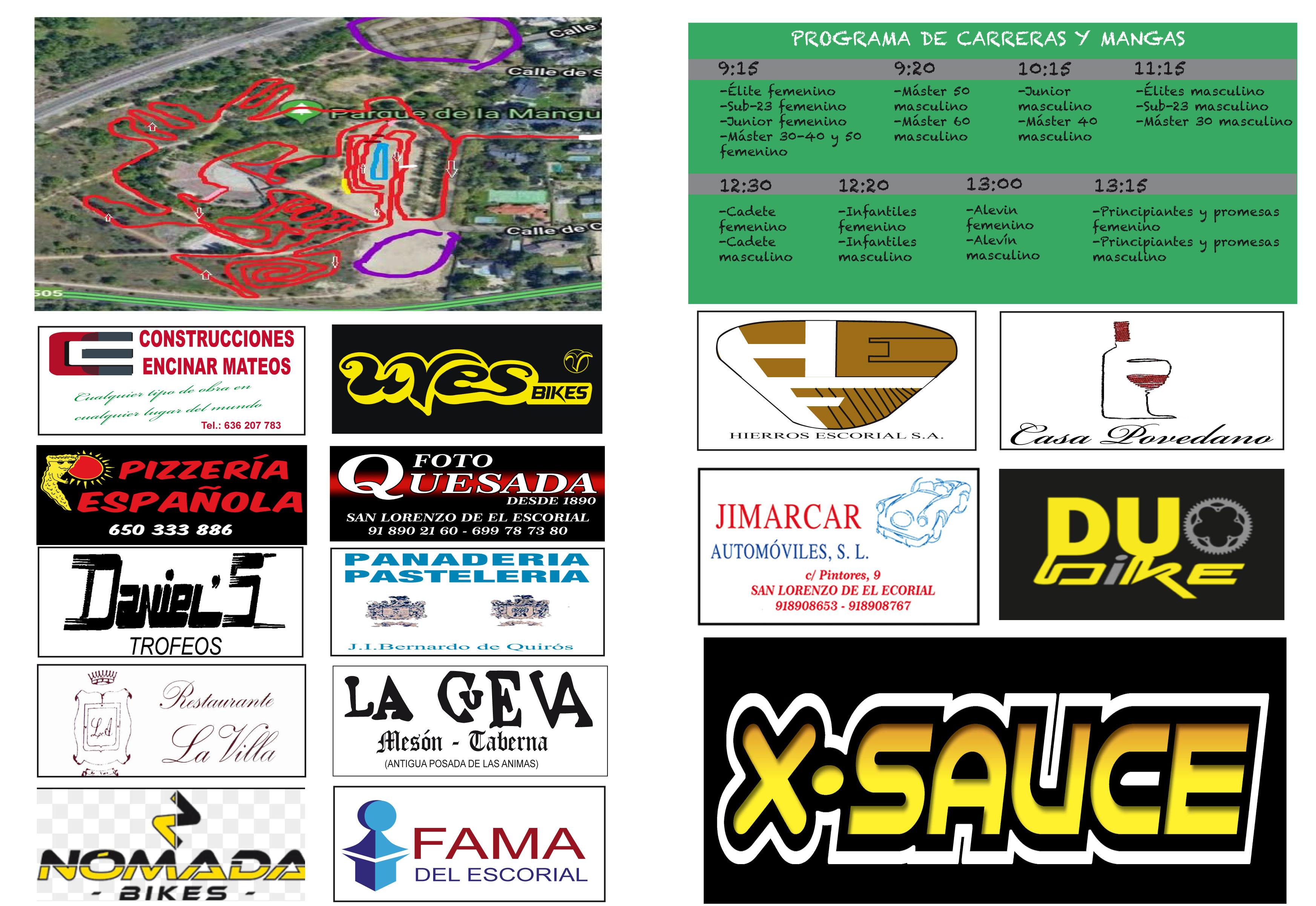 Sobre las 11 de la mañana y con un tiempo frío, soleado y un terreno húmedo, partían los ciclistas de la manga sub-23 y élite para afrontar un circuito nuevo por el Parque de la Manguilla de El Escorial. 2.800 metros formaban el trazado de cada vuelta que estaba compuesto por zonas técnicas naturales entre pinos y otras creadas artificialmente, como un tramo en forma de caracola; zonas más duras de subidas y bajadas y obstáculos de tablones, arena y escaleras.