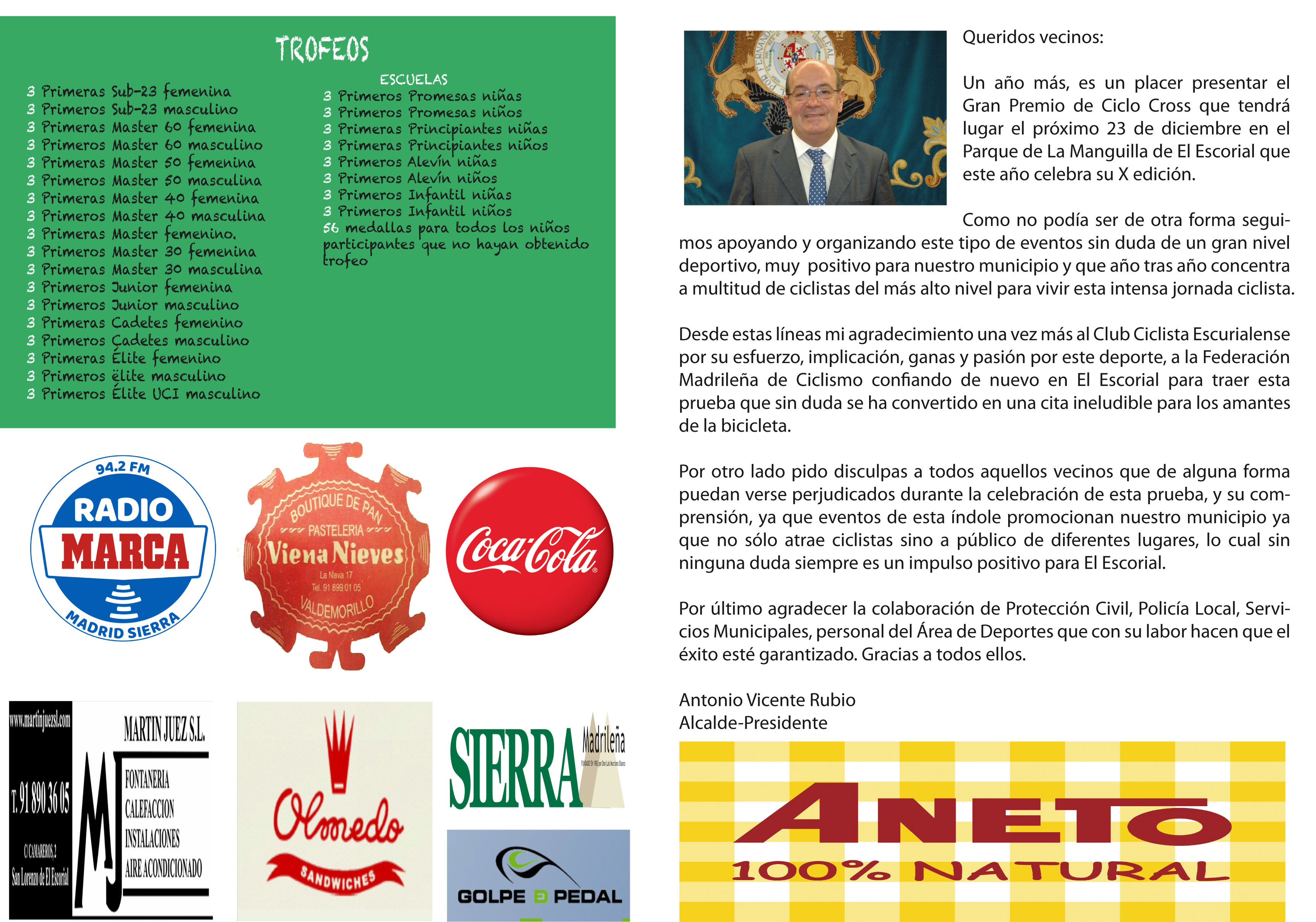 El municipio madrileño de El Escorial se volverá a llenar de colorido ciclista el 23 de diciembre, al disputarse la última prueba de la Copa de la Comunidad de Madrid de Ciclocross 2018. El X Gran Premio de Ciclocross Excelentísimo Ayuntamiento de El Escorial, organizado por el Club Ciclista Escurialense, se celebrará el próximo domingo a partir de las 9 de la mañana, en el Parque de La Manguilla de El Escorial. La novedad de la presente edición será el diseño de un nuevo trazado para celebrar los 10 años de ésta longeva carrera que ha tenido como ganadores en la manga élite al exciclista profesional Tino Zaballa (2009-2012), a Ismael Félix Barba (2013-2014), a Eduardo Jiménez (2016) y a Carlos Hernández (2010-2011-2015-2017). En la prueba podrán participar corredores de todas las edades y será puntuable en el ranking de la Federación Española de Ciclismo, algo muy positivo para los ciclistas que disputen el próximo Campeonato de España.