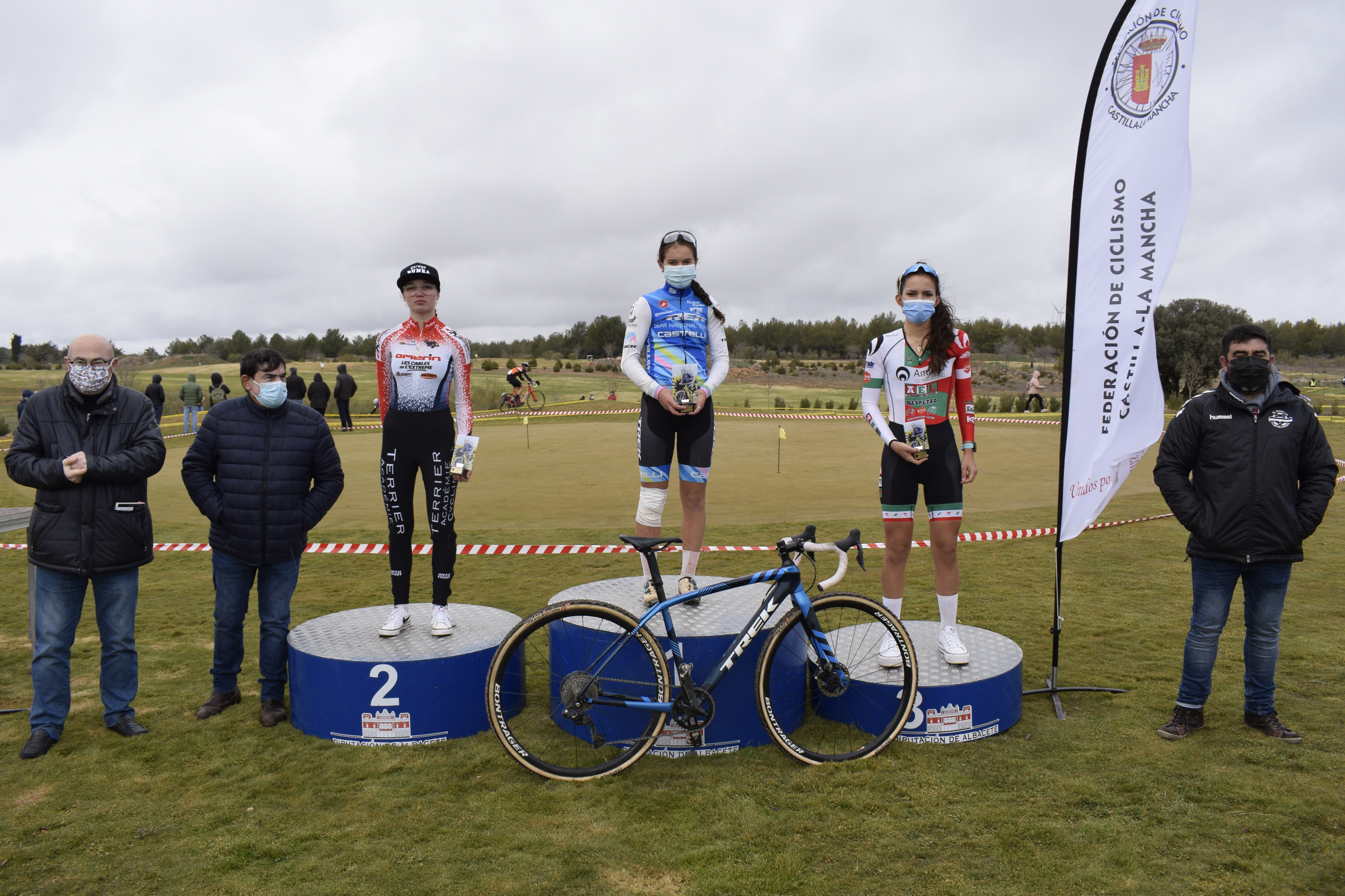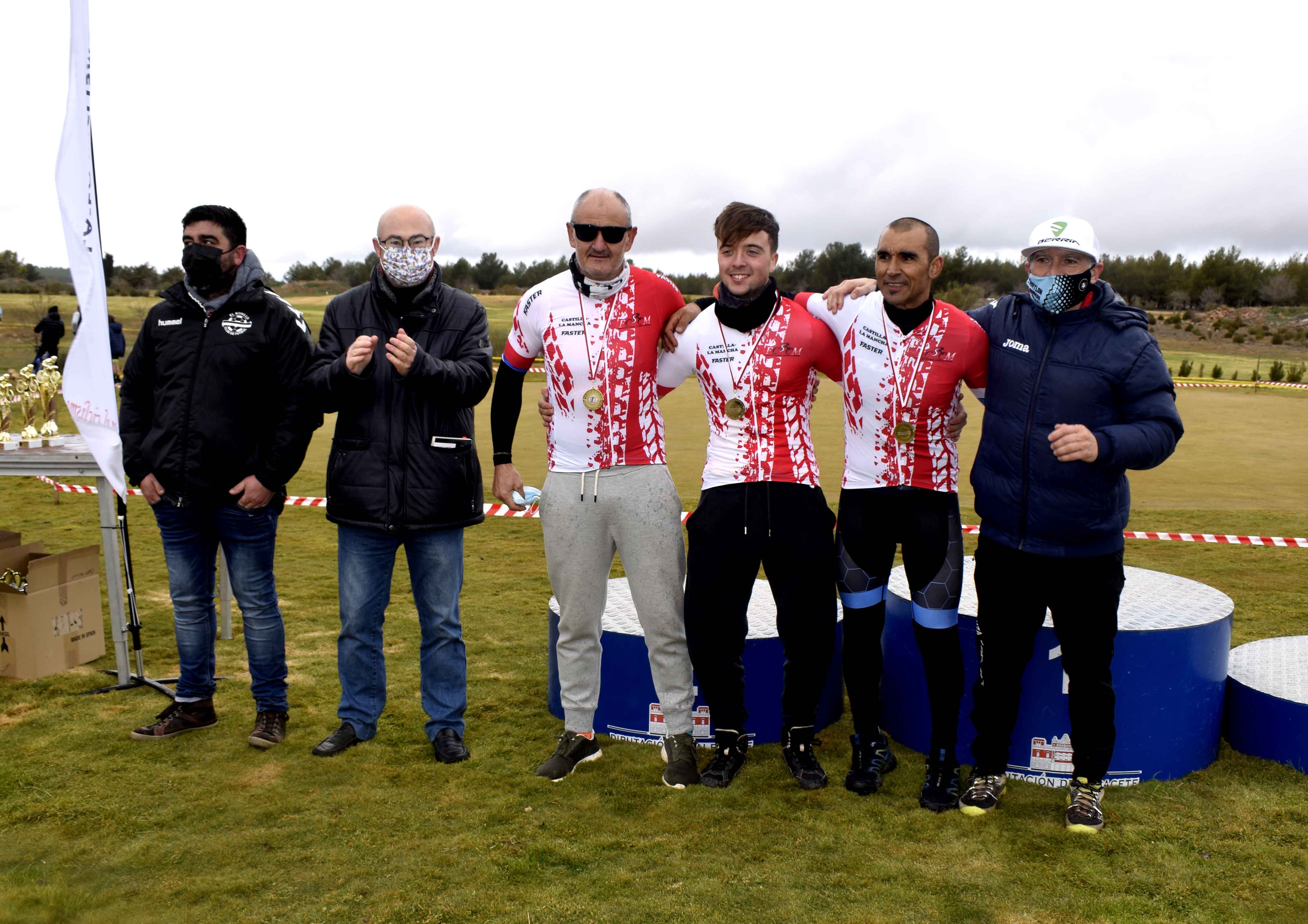 La entrega de trofeos y maillots era realizada por el concejal de Deportes del ayuntamiento de El Bonillo, Manuel Rubio; el concejal de Turismo y Desarrollo, Damián García; el presidente de la Federación de Ciclismo de Castilla-La Mancha, Vicente Alumbreros; el director técnico de la carrera, Antonio Martínez; y el presidente del Club Grego Racing Team, Gregorio Díaz.