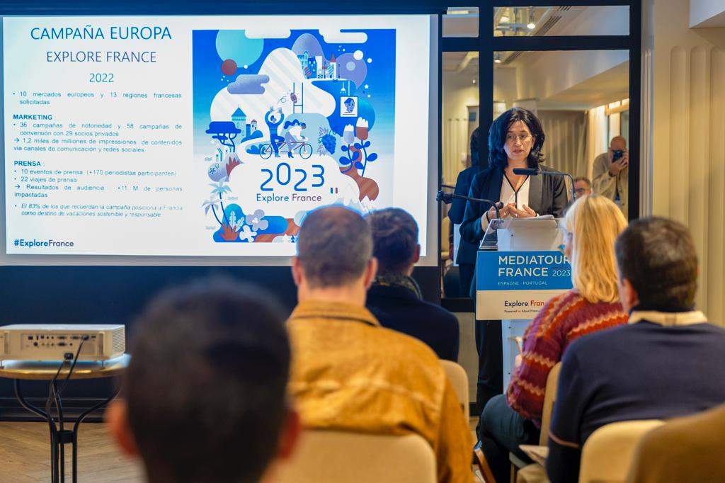La Agencia de Desarrollo Turístico de Francia en España (Atout France) presentó en Valencia su Mediatour Explore France 2023, gira informativa con la que revisa en las principales ciudades de la península ibérica (Barcelona, Lisboa, Madrid y Valencia) los indicadores turísticos de los visitantes procedentes de España y Portugal correspondientes al año 2022.
