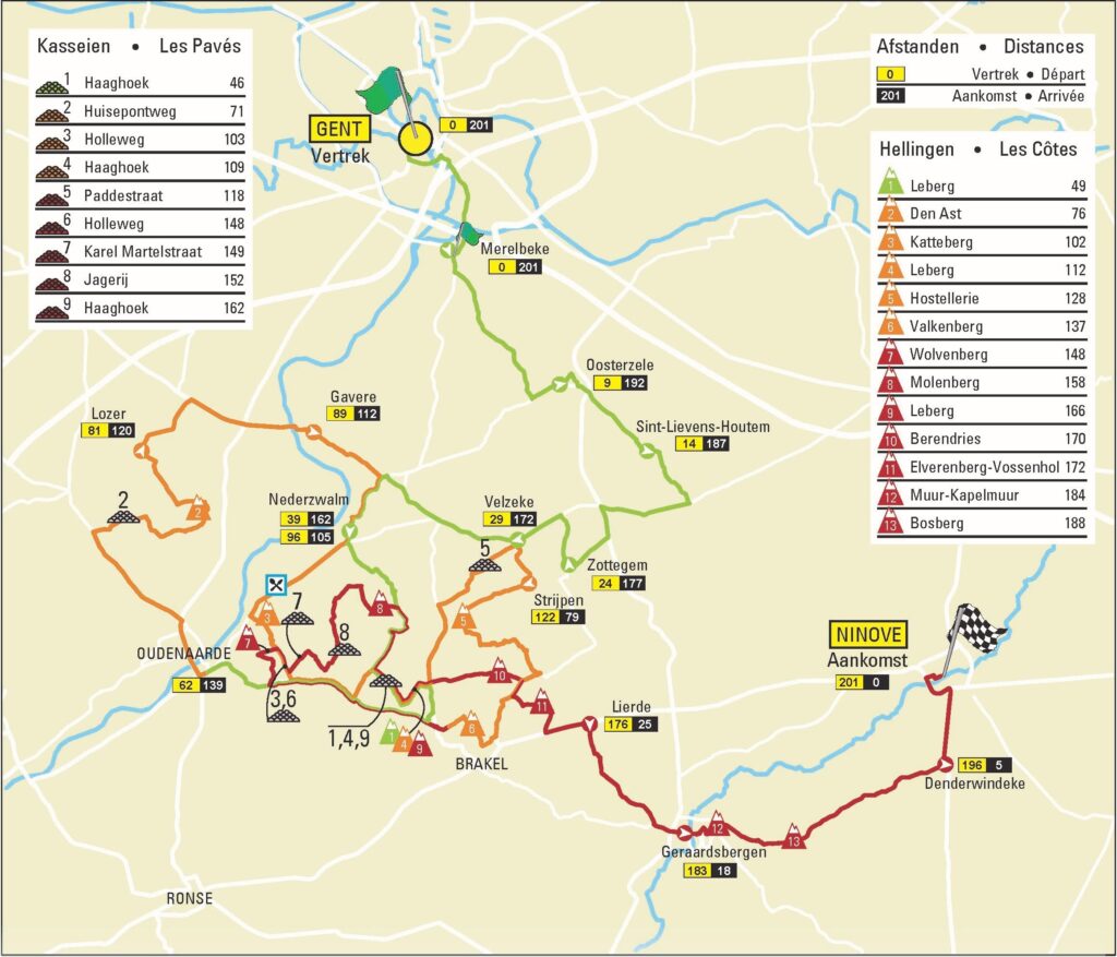Una carrera en la que se concentró el grueso de la actividad en los últimos 50 kms, de los 200,5 kms de los que constaba el «pequeño Flandes», el primer contacto con el adoquín del año. Antes, la historia la escribió una escapada formada por cinco corredores que contó con Kenny De Ketele, Bert De Backer, Yevgeniy Fedorov, Matis Louvel y Ryan Gibbons. Su diferencia máxiao alcanzó los 8’40s a 100 kms para el final.